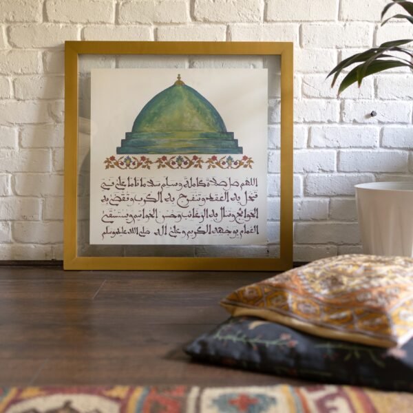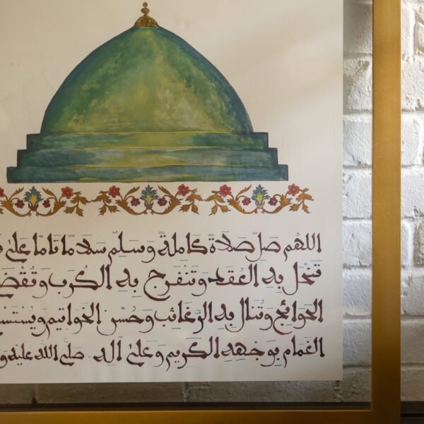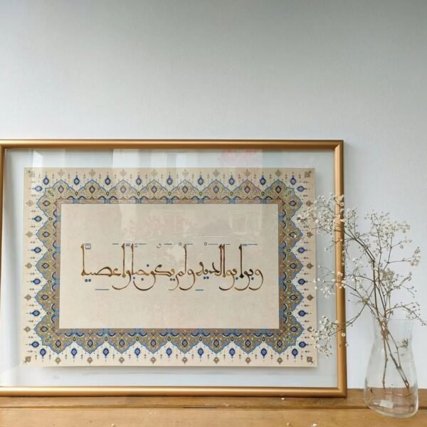 كتابة يدوية بالخط المغربى المبسوط على ورق بردى طبيعى مصنوع يدوياً فى اطار زجاجى من الجهتين بنى اللون